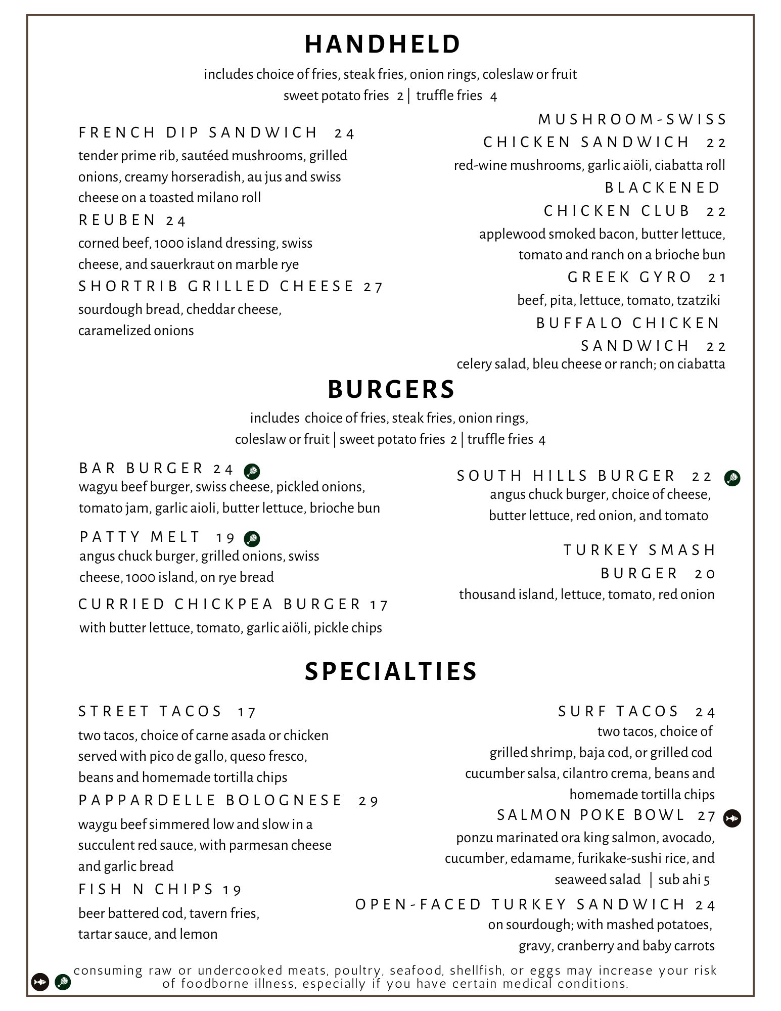 Lunch: 11:00 AM – 3:00 PM | Bar Bites: 3-5 pm