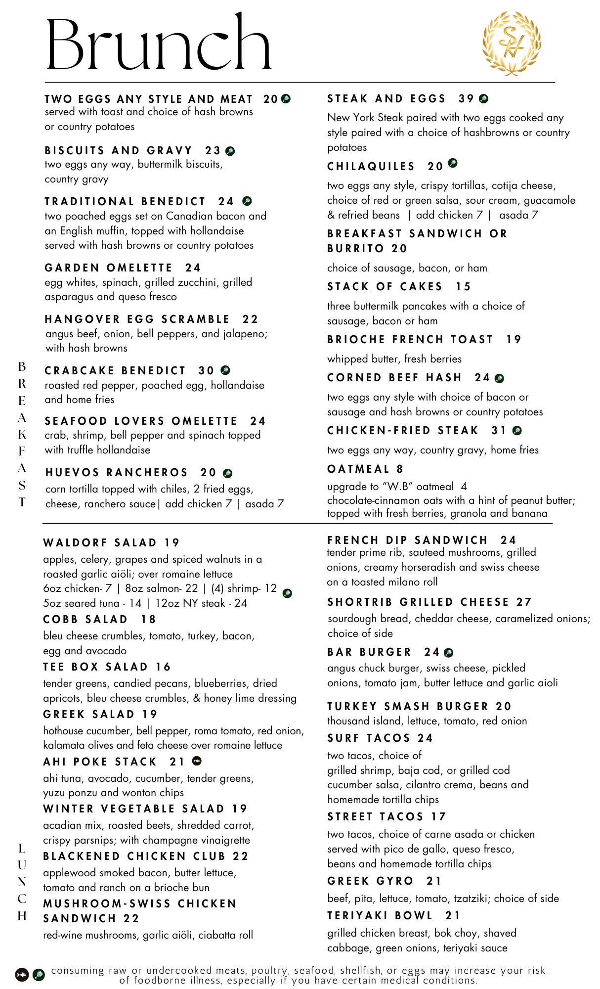 Brunch: 7 am – 3 pm | Bar Bites: 3 pm – 5 pm